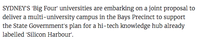 虽然,当时四所悉尼名校还未对此进行细节讨论,但是已经确定的是,为了支持政府的高科技“硅港”计划建设,四所大学愿意一同设计并分享它们的教育设施!