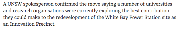 这下要给各位打个安心针了,新南威尔士大学的发言人称,确实有这么一回事。其表示,悉尼数所大学和研究机构当下正探索如何尽最大可能为创新园项目:白湾发电站重建工程出一份力。