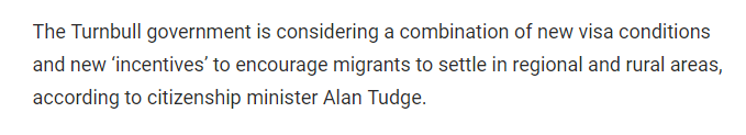 自5月份以来,Alan Tudge一直在努力游说内阁去通过这一项附加限制条件,而且限制的居住时长会越来越久,因为根据统计,一些依靠偏远地区州担保拿到PR身份的移民有部分依然回到了主要城市。
