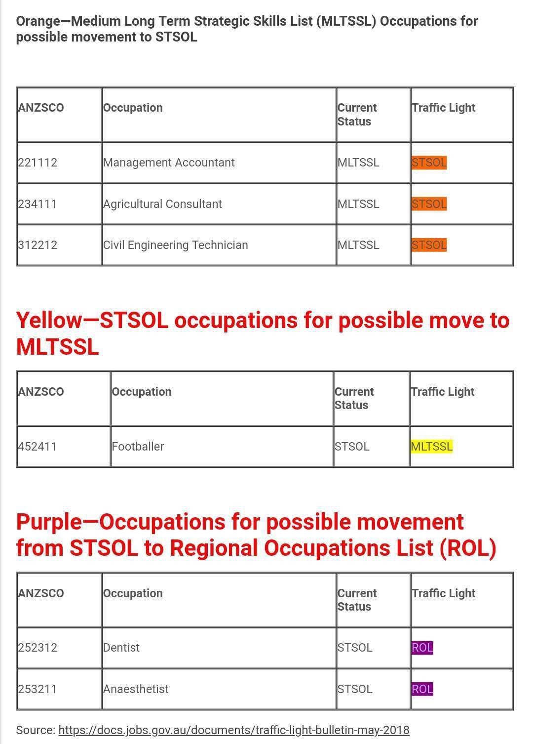 橘色列表:以下职业将很大可能从M列表转移到S列表: