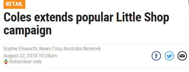 然而就在Woolworths庆幸Little Shop即将结束的时候,Coles发布了一项声明:原本定在8月28日结束的Little Shop应消费者的强烈要求,将延期数周的时间,会持续到9月底才结束!